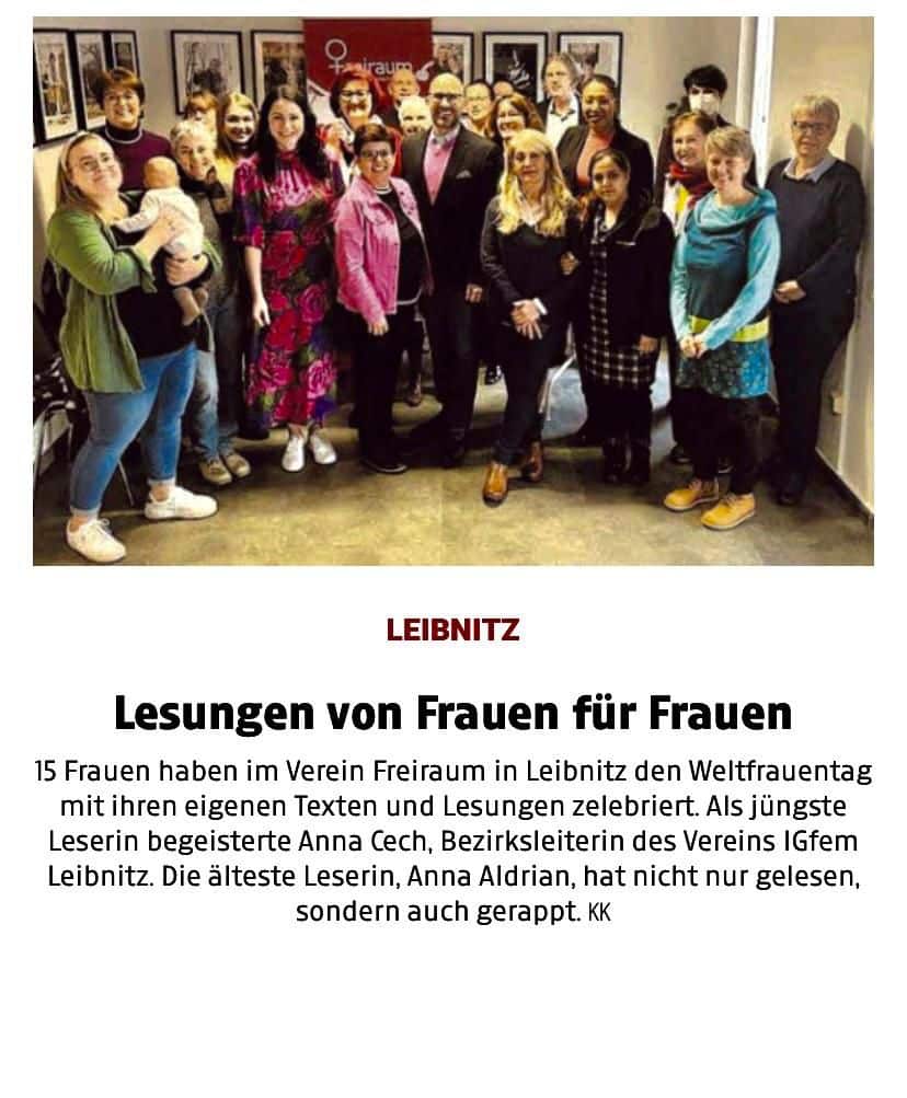 Für den verein-freiraum ist es wichtig, sich immer wieder als DAS Frauenforum zu positionieren. So betreiben wir regelmäßig und nachhaltig Lobbying für starke Frauen in der Südsteiermark.